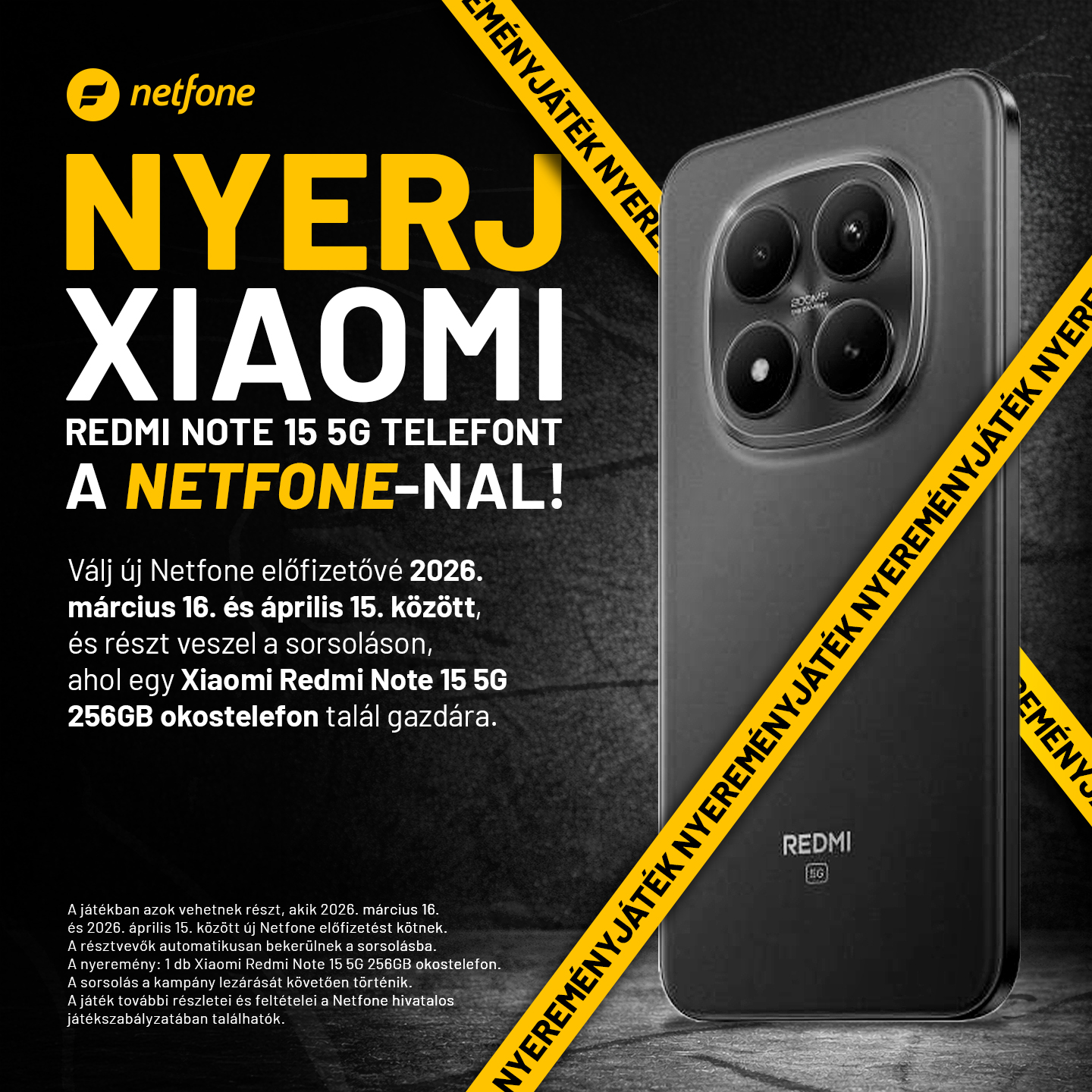 - Most még izgalmasabb lehet Netfone mobilcsomagra váltani. Az új előfizetők között kisorsolunk egy Xiaomi Redmi Note 15 készüléket 📱 – nagy kijelzővel, gyors 5G kapcsolattal és bőséges tárhellyel, hogy minden fontos alkalmazásod és tartalmad mindig kéznél legyen.